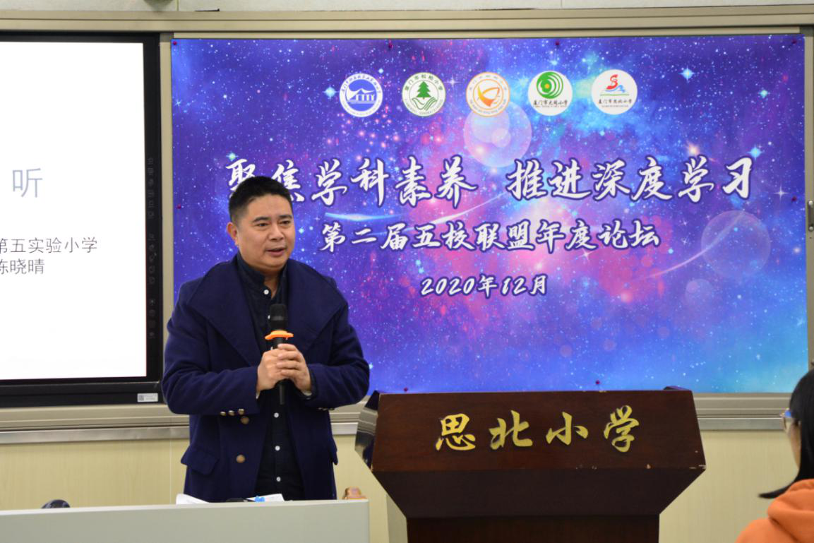 搭建交流平台,改善思维模式,聚焦“深度学习”,第二届五校联盟年度论坛于2020年12月15日拉开帷幕。本次论坛为期4天,以“聚焦学科素养,推进深度学习”为主题。厦门市思北小学作为联盟校,携手槟榔小学,大同小学,松柏小学和翔安区第五实验小学,试图以“深度学习”的逻辑,触碰教学变革的“天花板”。
