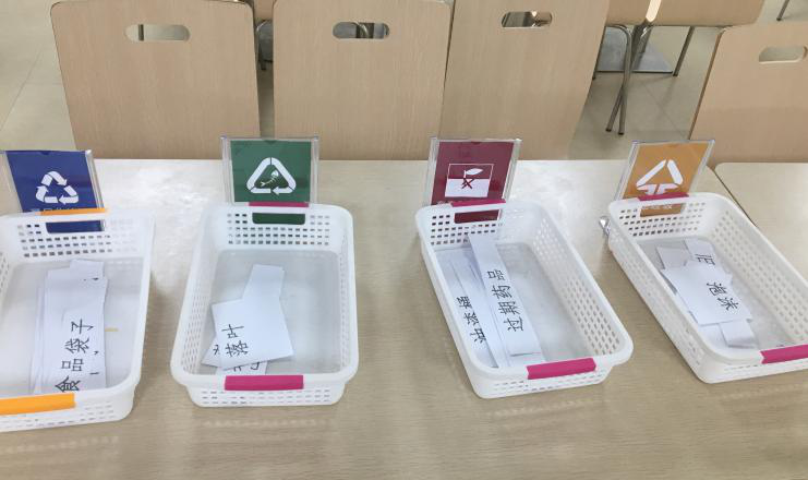 我校结合科技节组织了垃圾分类比赛活动,参赛选手将提供的所有垃圾实物图片按照正确的类别进行垃圾分类,把垃圾实物图片投入正确的垃圾桶里,并在试题上简要写下为什么这样分。分类实操时间为5分钟,理由作答时间为2分钟。以分类、答题正确率高者获胜。垃圾分类比赛旨在强化学生垃圾分类知识,也提升学生的积极性。