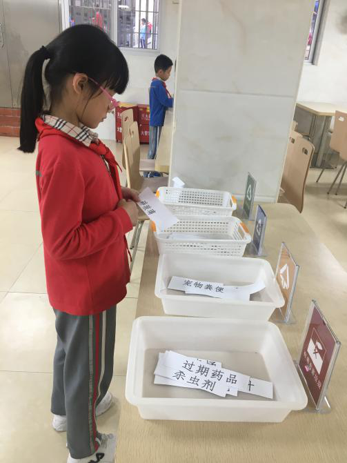 疫情期间学校进行错峰放学,为了更好地实行垃圾分类工作,每天共有三段垃圾统一投放时间;分校每天有两段统一投放时间。时间一到由广播在各班级内提醒,每天垃圾投放点由导护老师进行检查监督,督导结果由校医反馈在班级的每日评比栏中。