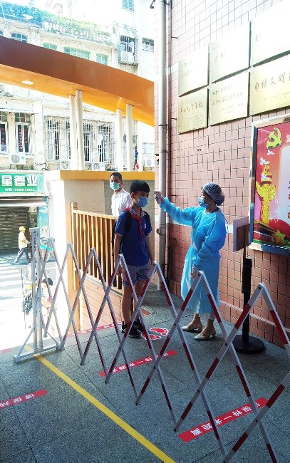 根据各级政府及教育局对新型肺炎疫情的防控精神和工作要求,为加强新冠肺炎疫情的防控工作,确保2020年学生在校期间学习生活的有序开展,切实保障师生的身体健康和生命安全,我校以郭方年校长为组长的疫情防控小组,紧抓安全防疫警戒线,针对疫情现状结合学校实际多次商讨,群力群策,采取了一系列有效的防控措施,教师导护测温岗,学生进门消毒测温,多措并举打响校园“抗疫”保卫战,确保筑牢校园“防疫墙”,为全体师生的安全保驾护航!