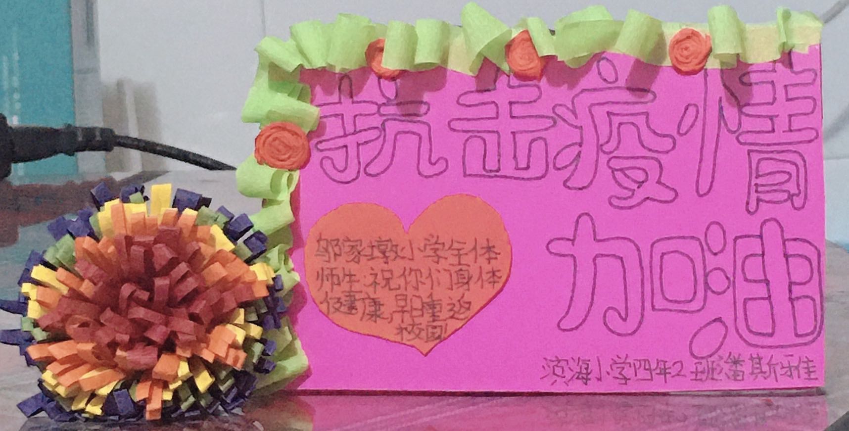 活动期间,我校一、二年级的小朋友们积极行动,争当抗“疫”小先锋,用自己简单的一言一语传递着对邬家墩小学的学生们的祝福,表达着自己的心声。