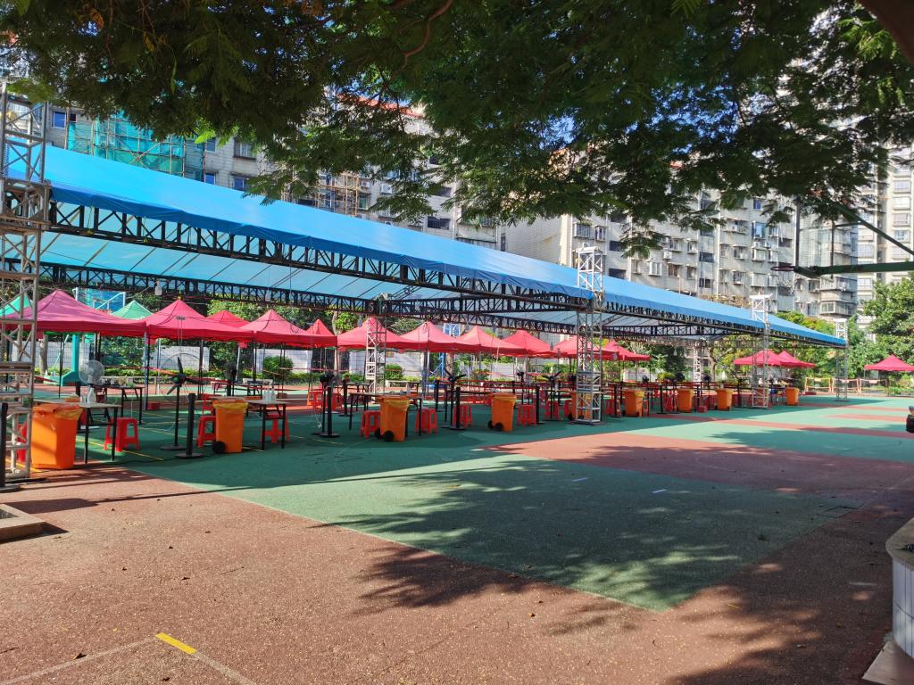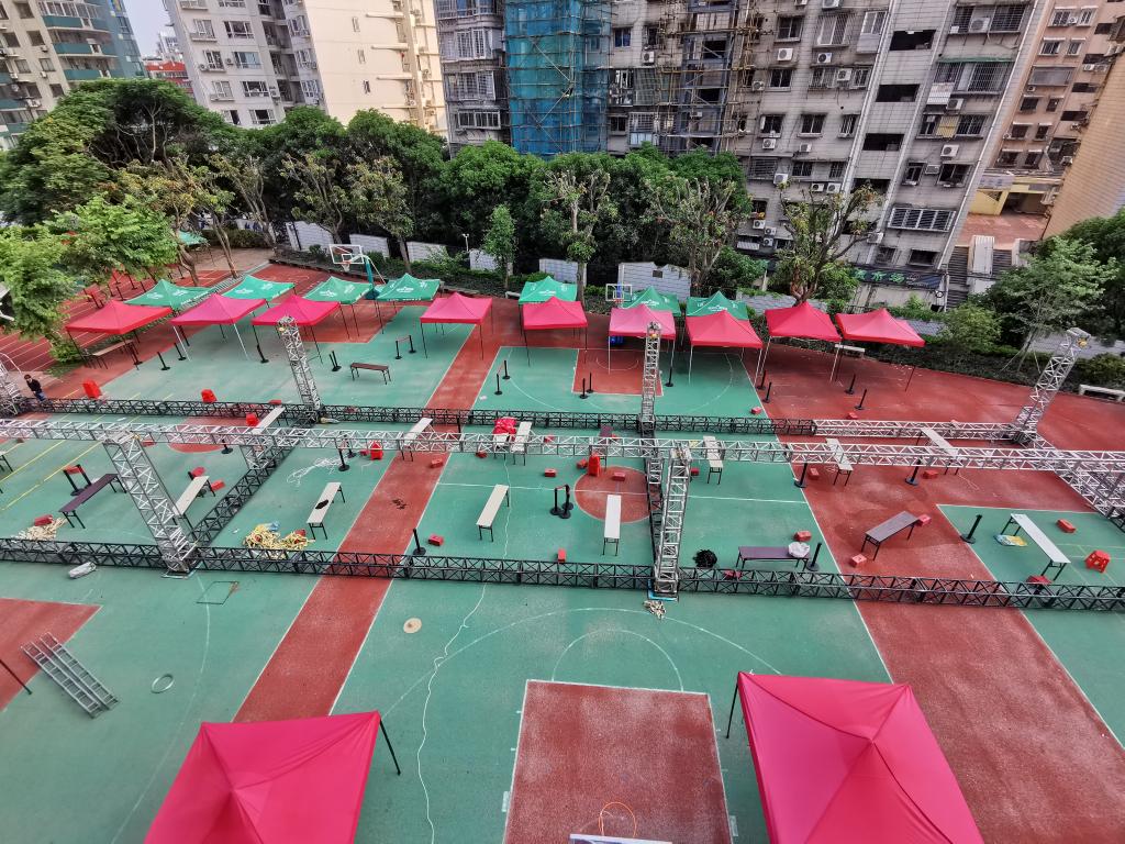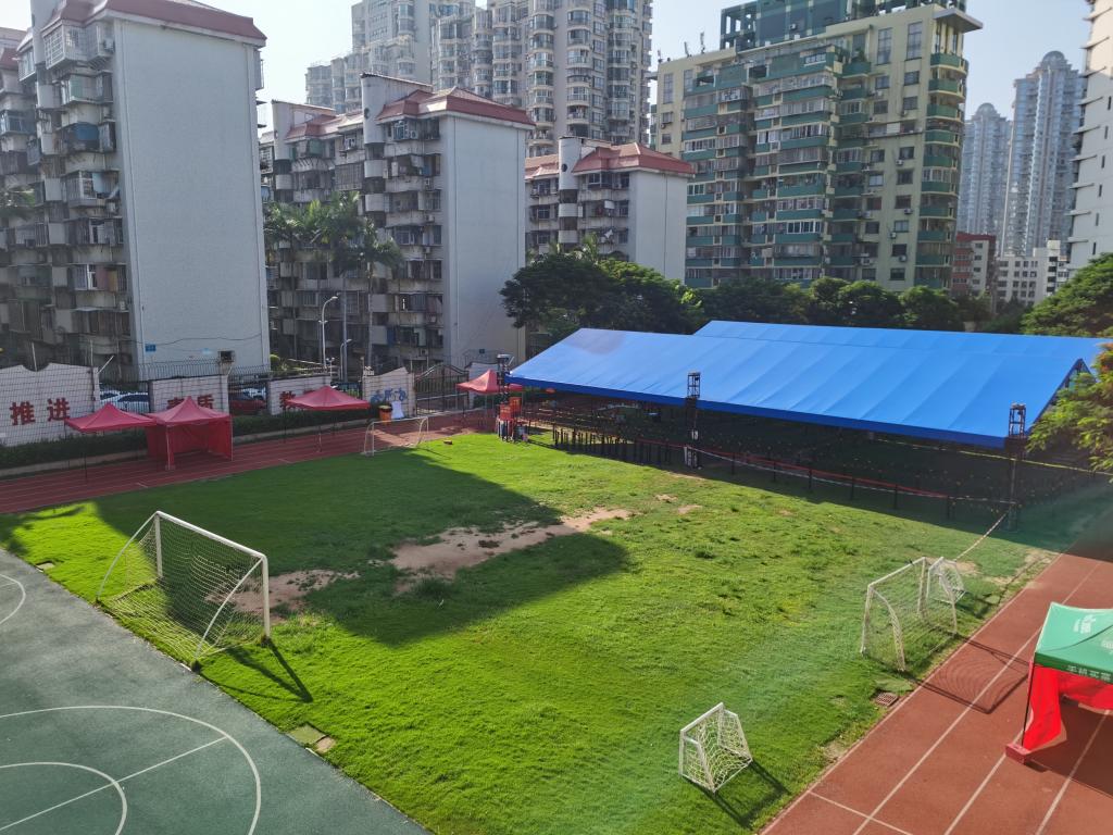 同时,作为核酸检测点之一,我校积极配合岳阳社区迅速搭建好场地,为核酸检测做好准备。