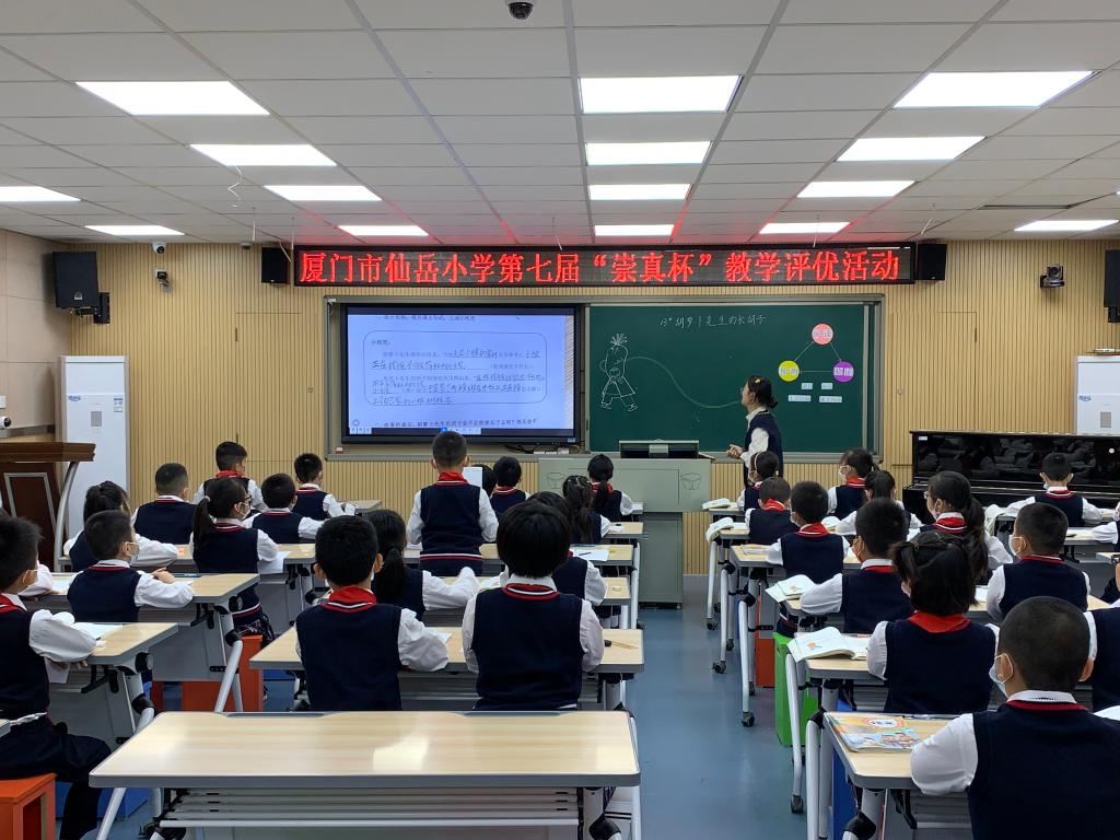 为更好地落实“双减”政策,提高教育教学质量,促进全体教师专业素养的提升,2021年11月18日至12月1日,仙岳小学举行了第七届“崇真杯”青年教师评优活动。本次活动将信息技术2.0研训微能力点融进课堂教学,以“优化课堂 减负增效”为主题。