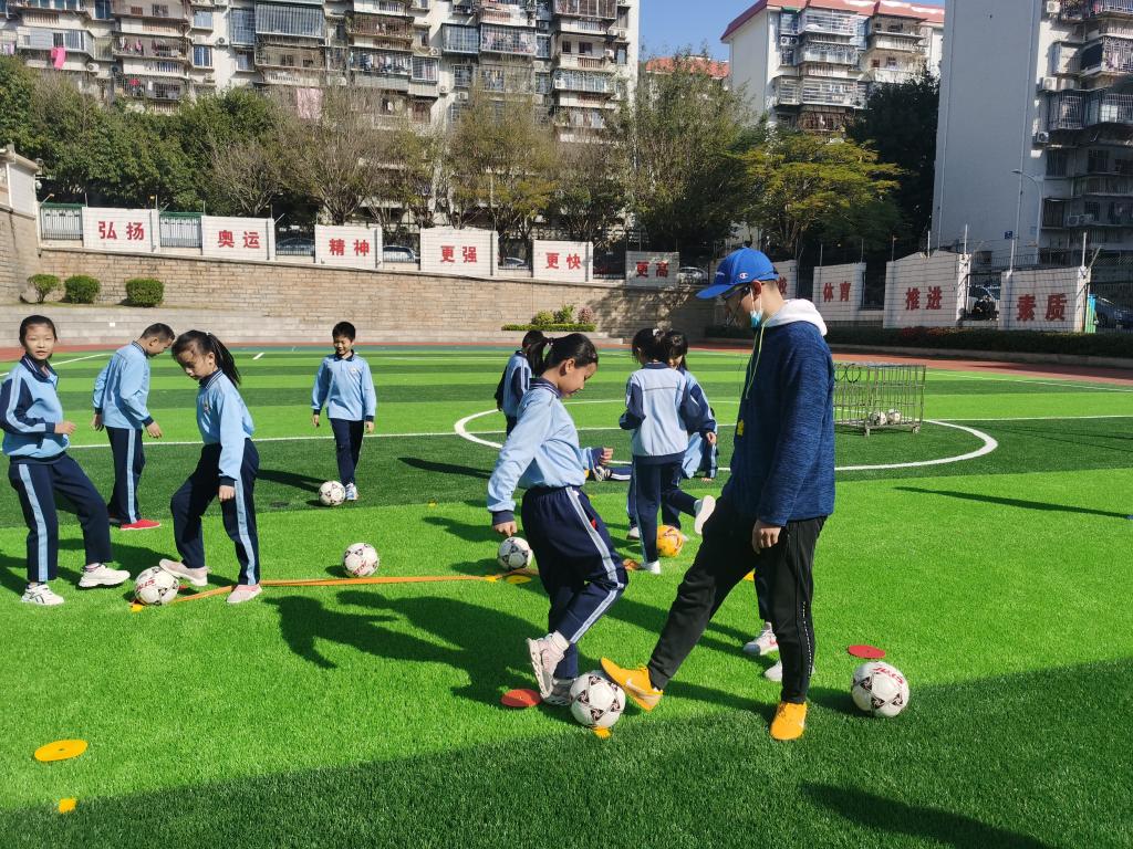 刁建超老师的《快乐小足球》融合学校特色,引导一年级学生认识足球,感受足球运动的乐趣,同时发展学生的运动能力。
