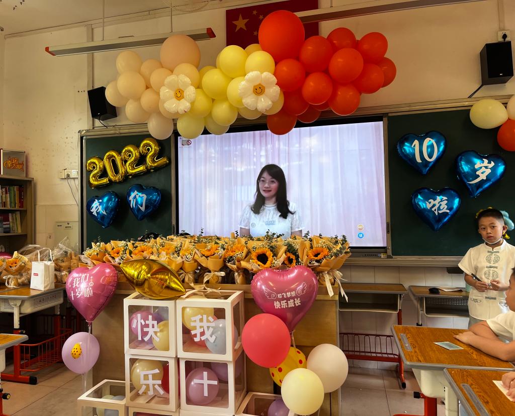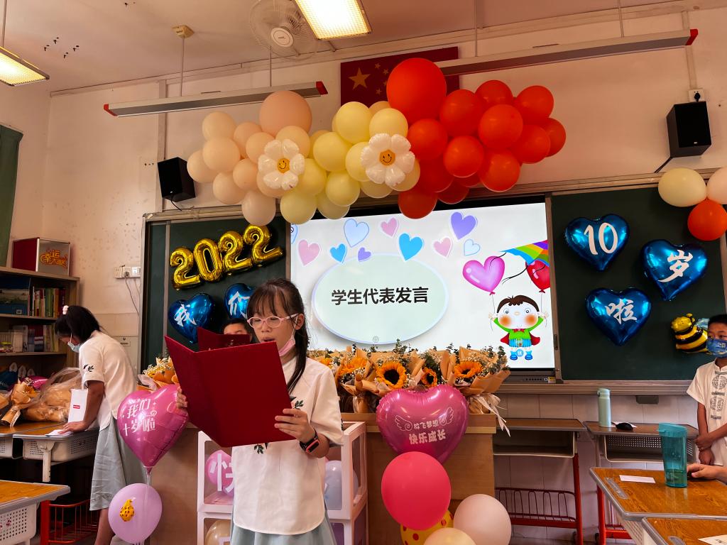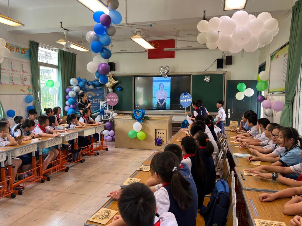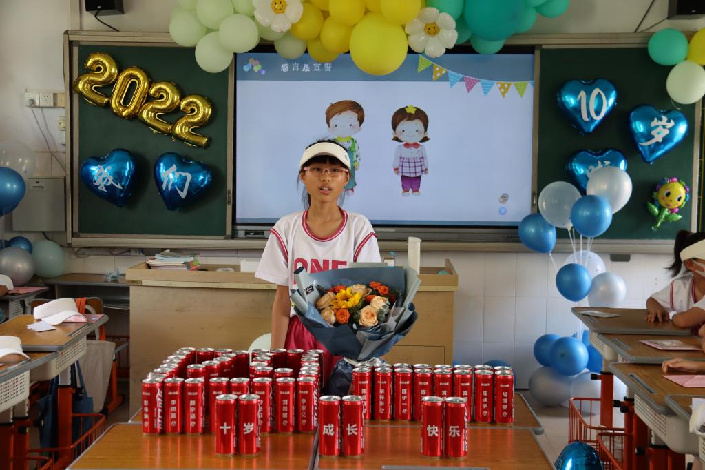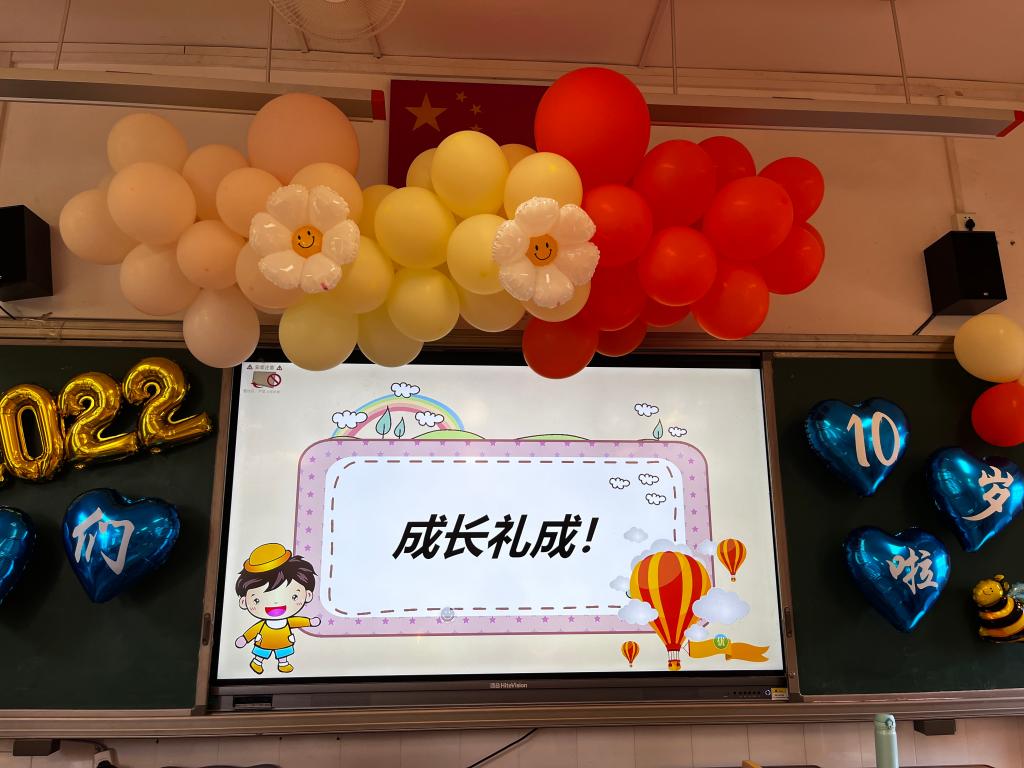 一帧帧照片,一个个笑脸,家委协助收集的孩子十年成长足迹的视频带领着孩子们“追忆往昔”。十年,弹指一挥间,孩子们便长成了言笑晏晏的少年。