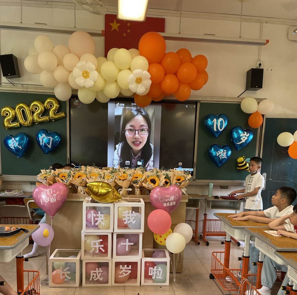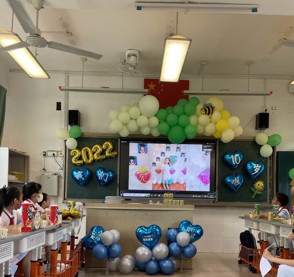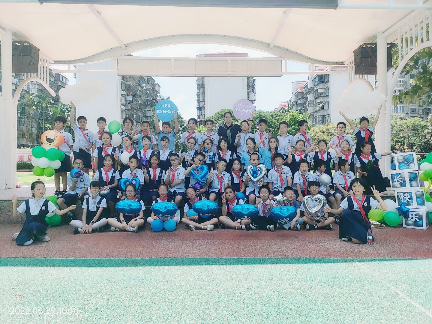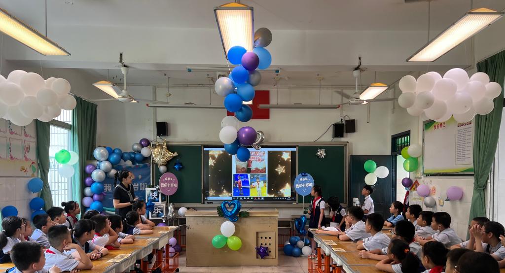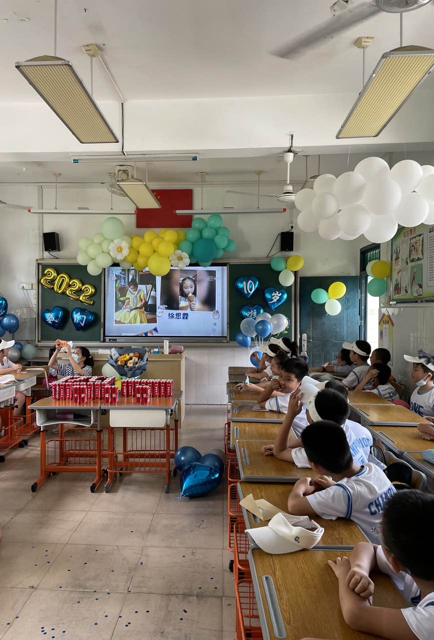 一帧帧照片,一个个笑脸,家委协助收集的孩子十年成长足迹的视频带领着孩子们“追忆往昔”。十年,弹指一挥间,孩子们便长成了言笑晏晏的少年。