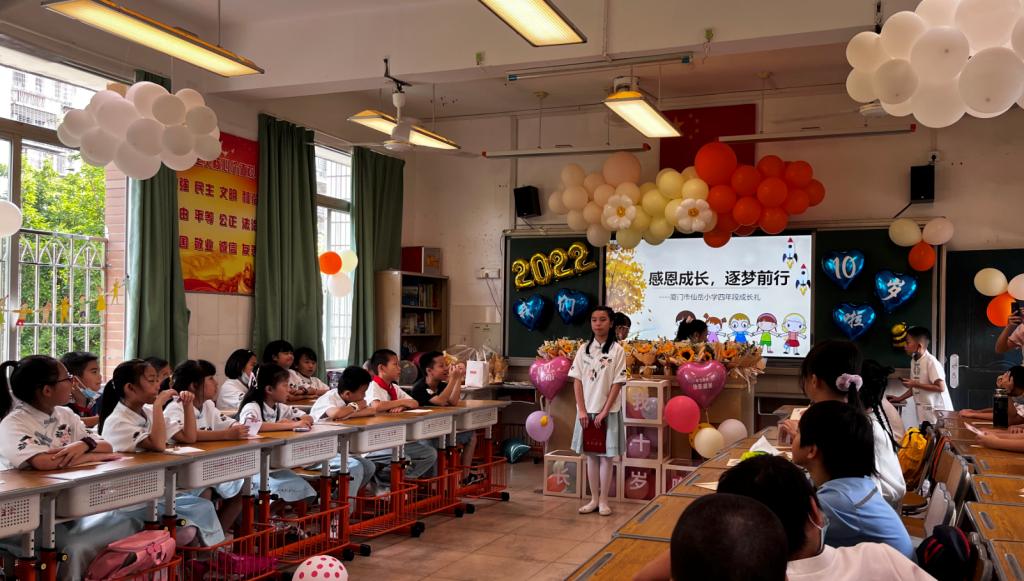 成长不期而遇,美好如约而至。彩色的气球装点着五彩的童年,灿烂的笑容绽放着幸福的心情,鲜艳的服装描绘着成长的美好,2022年6月29日这一天,仙岳小学的校园比以往更加生机盎然,十岁成长礼活动在孩子们的翘首企盼中翩然而至。