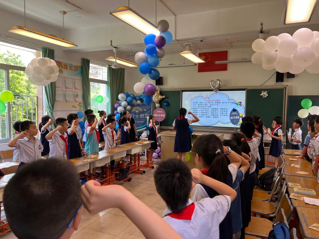 十岁是被祝福的,同样也被赋予责任。在学生代表的带领下,孩子们向着未来,向着理想,庄严宣誓,许下铮铮誓言。