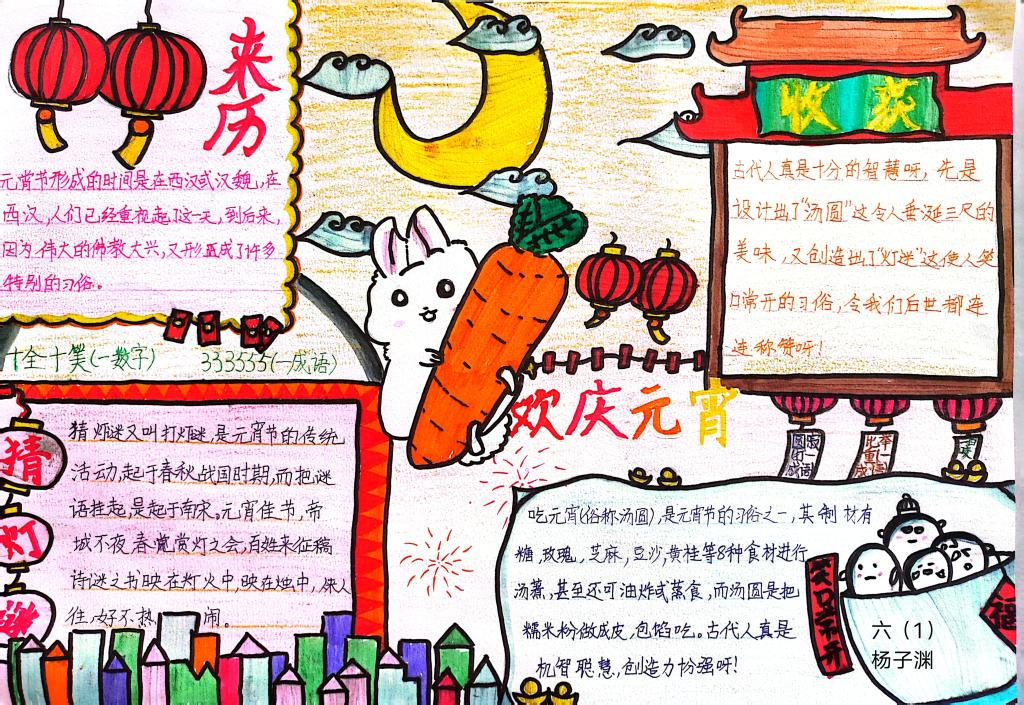 以“福兔”为主题的剪纸、窗花、灯笼、挂件、泥塑等手工作品,传递了同学们弘扬传统文化,传承红色匠心的决心。同学们通过学习元宵节的各项传统文化,深入了解节日的文化内涵,以自己编辑的手抄报展示节日的收获和感悟。