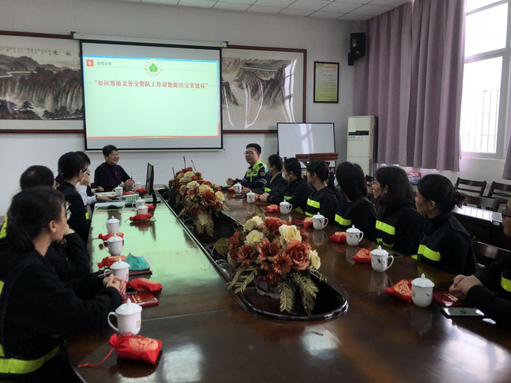 学校与义务交警队共同就“如何帮助义务交警队工作?”一题进行讨论。大家畅所欲言,为学生交通安全提出宝贵的意见。