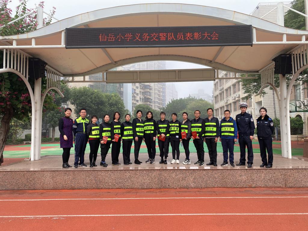 2月13日,学校为首批义务交警队员举行隆重的表彰仪式。首批转见习的12名队员和自己的孩子手拉手走上颁奖台,仙岳小学郭校长、江副校长依次为12名义务交警颁发荣誉证书。