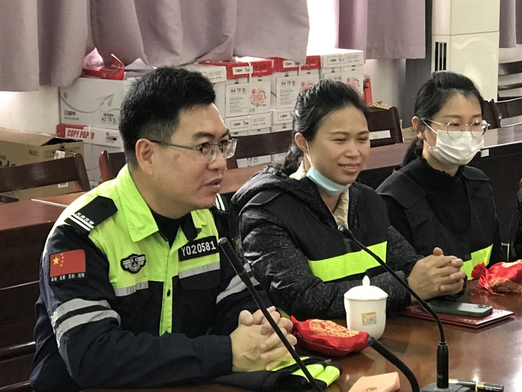 郭校长和江副校长分别发言对义务交警队员们表示感谢,并送上祝贺福袋。