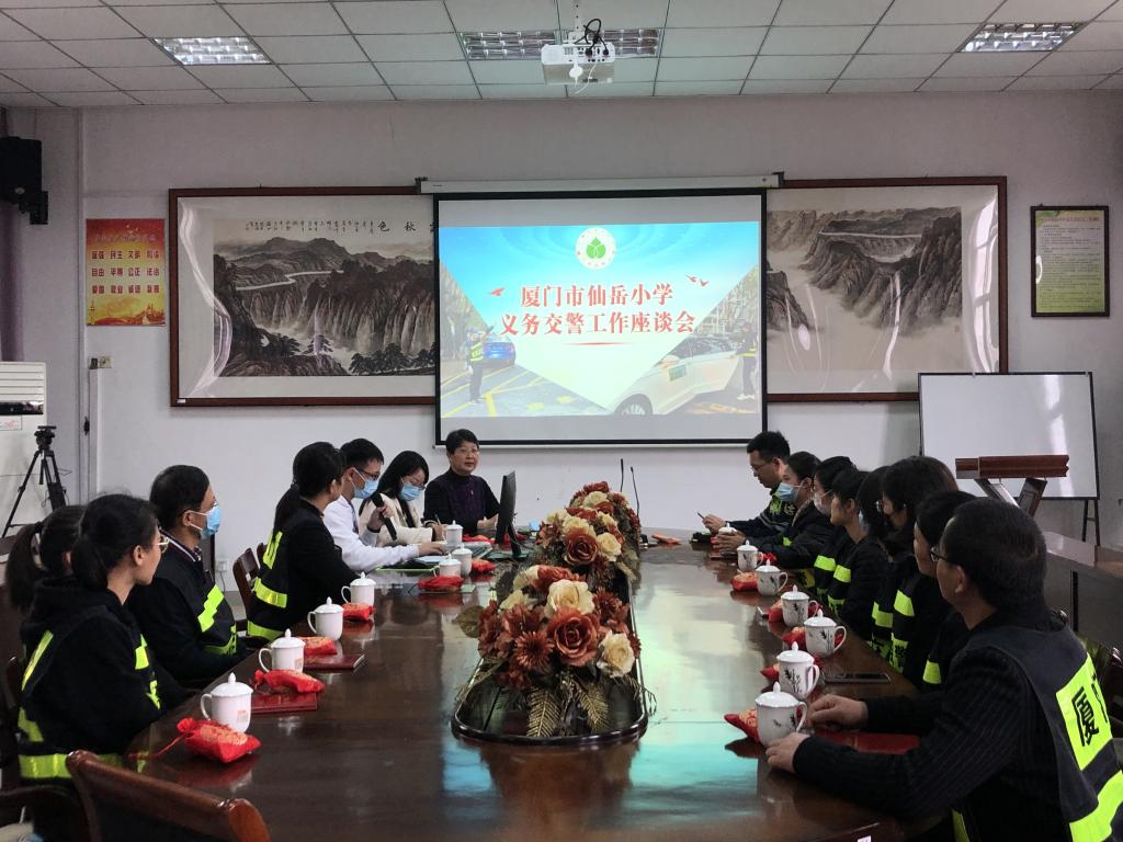 在表彰大会仪式结束后,校领导及义务交警队员们在会议室共同举行厦门市仙岳小学首届义务交警座谈会。