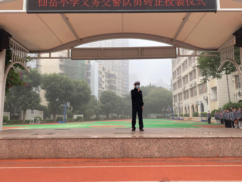 随后,筼筜交警中队沈警官上台发言,他对仙岳小学义务交警工作给予肯定,并对全体师生进行交通安全教育。