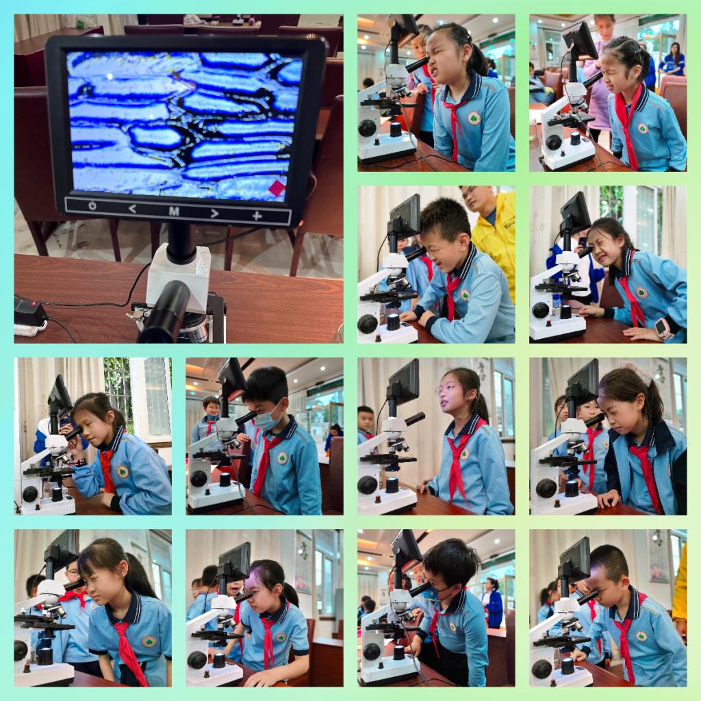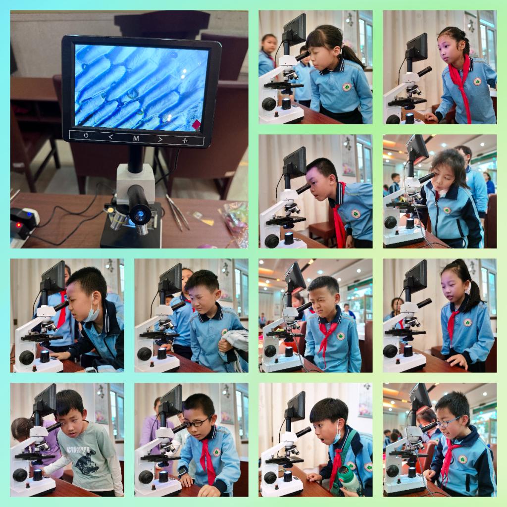 接着,孩子们随着何博士来到了显微镜面前,通过显微镜观察,超近距离地了解洋葱和番茄的根、茎,对比它们不同的细胞形状。