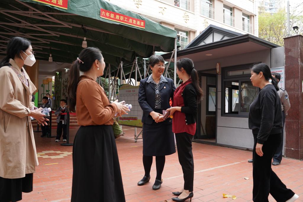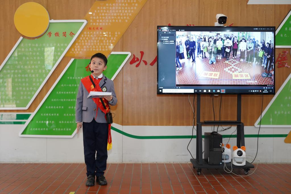 春天的校园,绿意盎然,鸟语花香。在郭校长的陪同带领下,参会人员一行人首先对校园进行参观。四年2班陈奕喆同学担任小解说员,向来宾们介绍学校的办学理念、校风校训、培养目标及近年来取得的各项荣誉称号。来宾们对整洁优美的校园环境、丰富多彩的文化氛围予以高度评价。