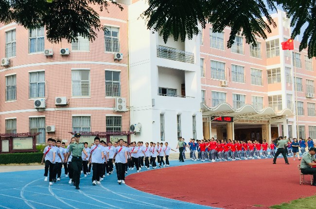 军训伊始,学校为本次疫情防控下的特殊军训活动做了周密的部署,德育主任叶伟敏老师发表动员讲话,对军训提出具体要求。陆军特勤疗养中心领导对此次军训高度重视,精心安排,针对学生年龄制订了详细的军训计划,选派了优秀军官担任教官。各班级正副班主任老师和学生一同出操,学习动作要领,率先垂范,风雨无阻。