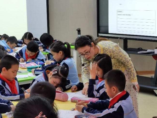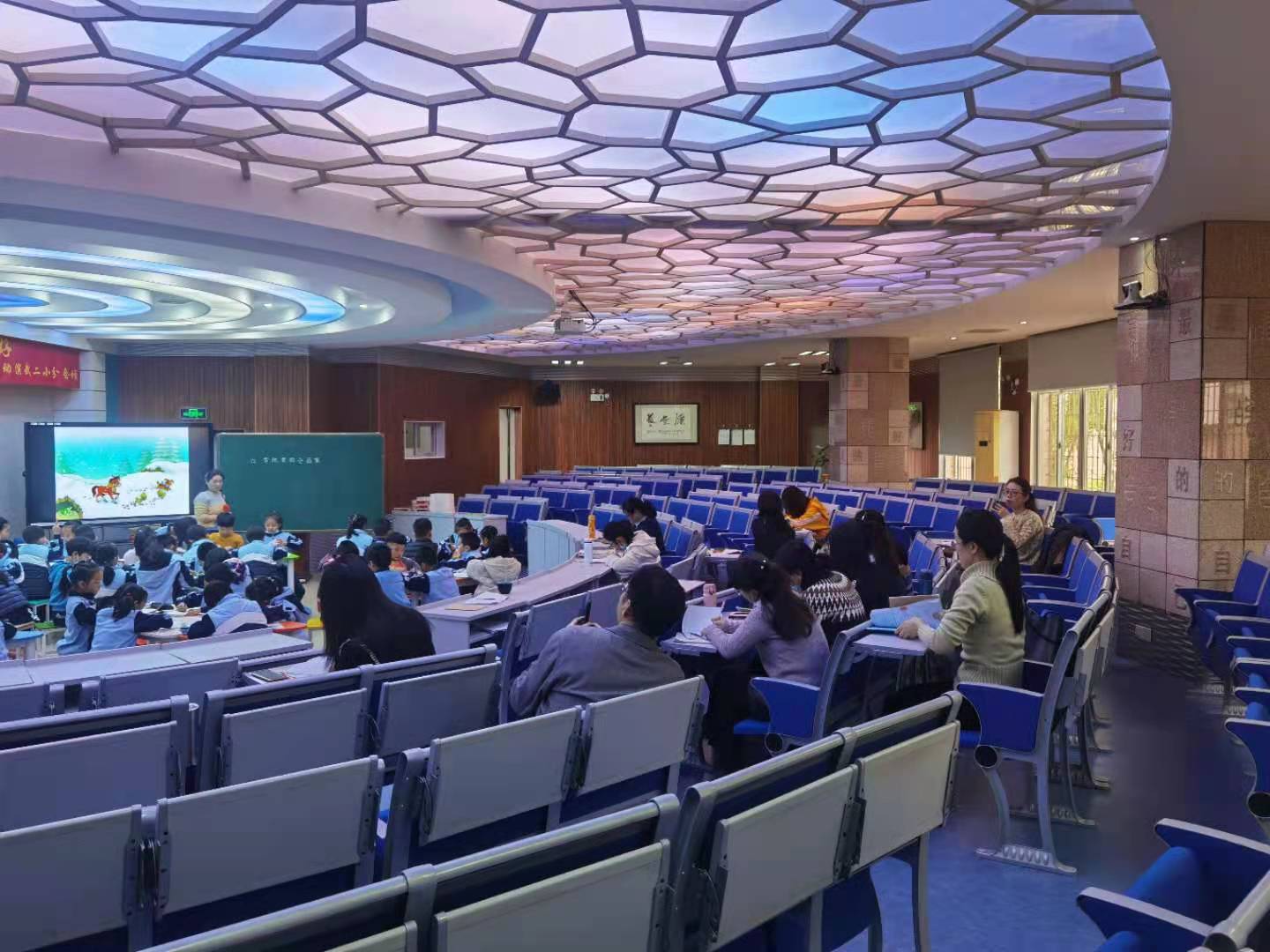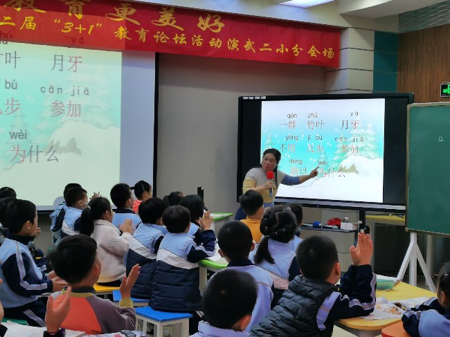 第一节由杨莉老师为大家展示《雪地里的小画家》阅读指导课。杨老师声情并茂的朗读、用心设计的板书、和蔼可亲的笑容深深吸引着孩子们,孩子们随着老师温柔的语调融入到课堂学习中来。