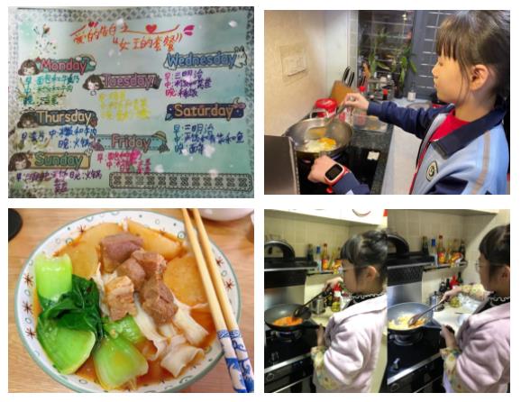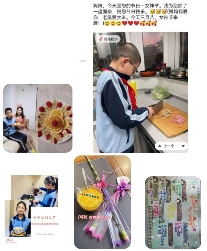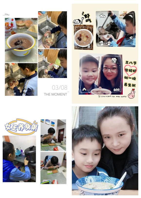 为了让家里的女神们温馨过节,今天的高年级同学们当起了大厨,一展身手!看,这一份份“女王健康餐”营养均衡,荤素搭配,各色菜品,一应俱全!女王们的健康我做主!