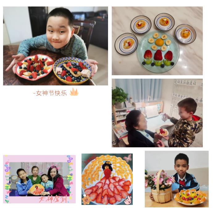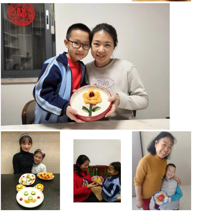 这一份份“女王养颜果”出自低年级小园宝们之手,是不是让你垂涎欲滴?看,今天的女神们好幸福,吃上这一份宝贝们亲手制作的水果拼盘,让女神们感受消除一天的疲惫,感受到最温馨的祝福!