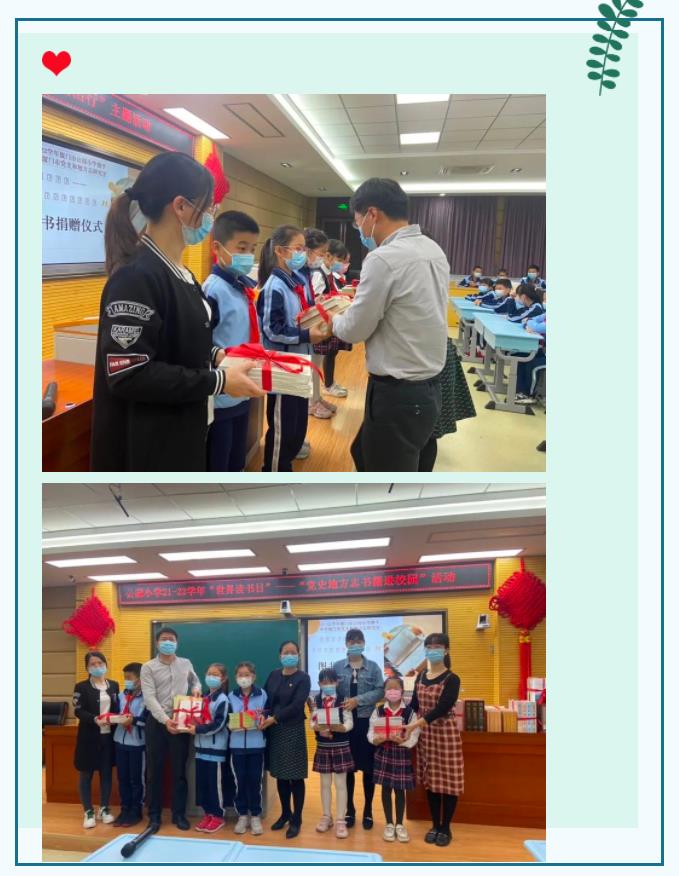 4月18日上午,中共厦门市委党史和地方志研究室单位赠与我校100余册党史地方志书籍,奏响了公园世界阅读日献爱心的前音,意在激发同学们了解厦门历史、认识厦门地情的兴趣,从党史中汲取智慧和力量,厚植爱党爱国爱社会主义情怀。