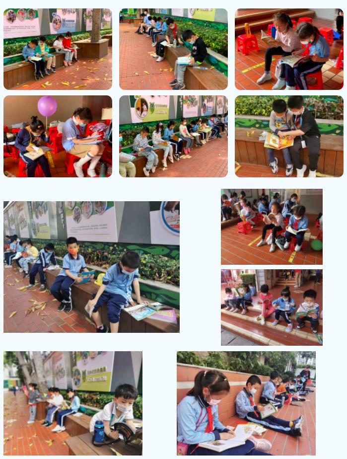 操场边、楼梯旁、树荫下、跑道上,小园宝们觅个角落,随性而坐,畅游书海,书香氤氲!