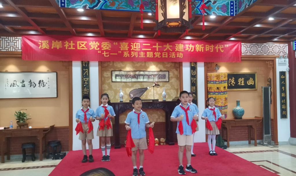 6月27日我校党支部组织党员代表、团支部、少先队组成“童心向阳队”参加了溪岸社区举行的“喜迎二十大建功新时代”七一主题党日系列活动,承担并完成了溪岸社区关工委组织的“童心向党喜迎二十大”主题活动。