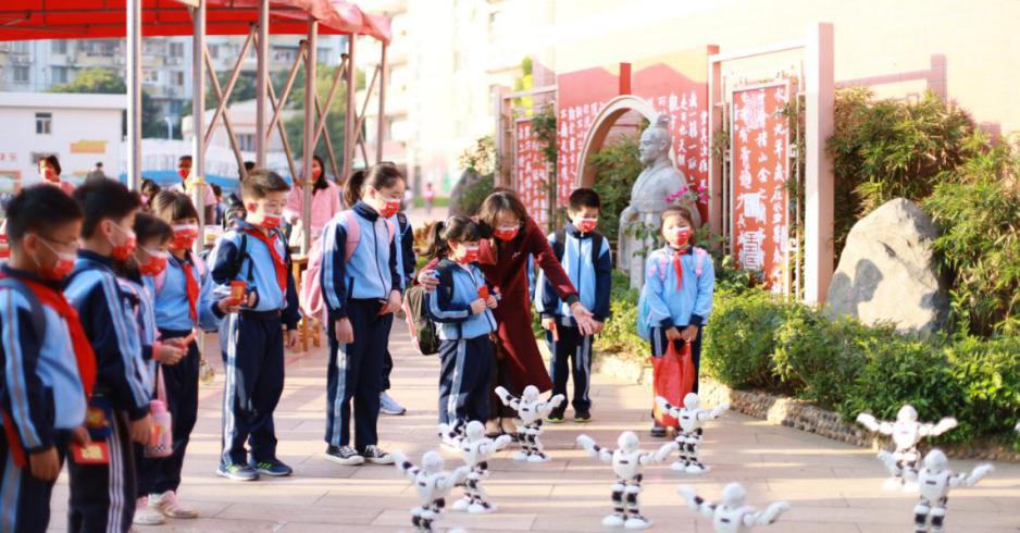 机器人街舞队也在校门口迎接孩子们返校,他们靠着一身灵活而可爱的舞技,吸引了无数孩子们的炙热目光。