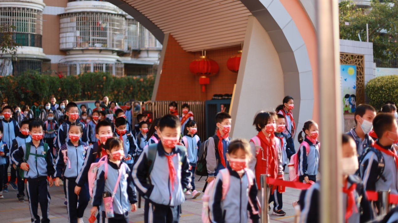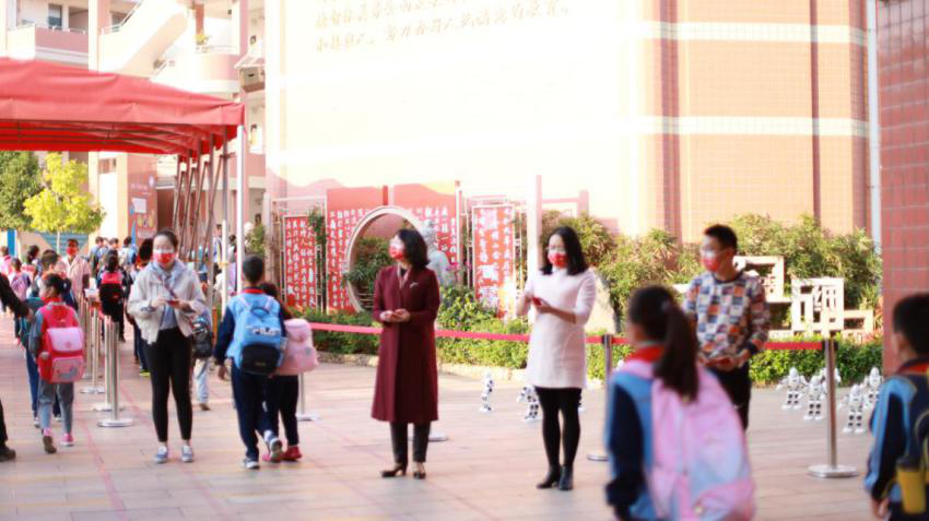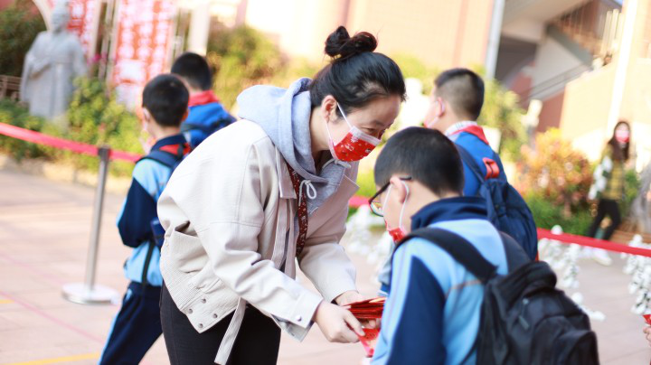 春暖花开好时节,2021年2月22日上午,莲龙小学沈校长、叶副校长与全体行政老师早早地在校门口迎接阔别一个假期的莲龙小娃们。瞧!孩子们一个个戴着 “牛年大吉”大红口罩来啦!牛年“萌”娃,可别提多有趣了,寂静了一个寒假的校园立刻焕发出充满牛气的生机。