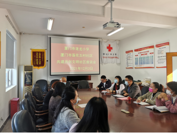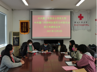 2021年12月3日上午在蔡长梅书记、沈雅芳校长和叶明治副校长的带领下,莲龙小学的领导班子一起走访了厦门市莲花五村社区,开展了座谈会,就深化学校和社区建立共育机制方面,以及共建健康和谐的育人环境等方面,进行交流并签订了共建共育机制协议书。