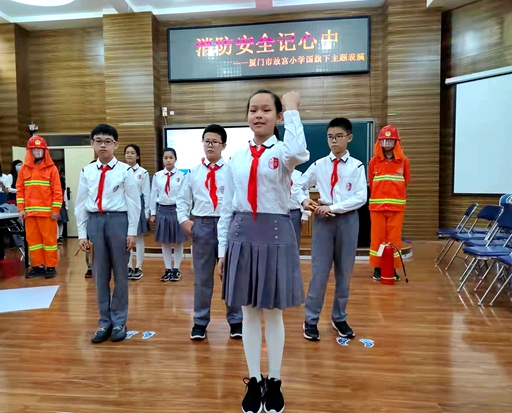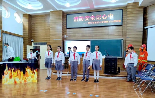 11月8日周一,由六年(3)班的学生带来的《最美“逆行者”》消防日主题表演,用悠扬的童声呼唤对消防员的热爱、用老少皆宜的“对诵”形式,倡议消防安全知识。