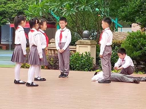 5月23日上午国旗下,一场由二年级学生带来的小品话剧,为全校师生上演了一场防溺水主题表演。通过生动的语言、夸张的动作表演,让溺水事故更为醒目地展示它带来的不可挽救的后果。爱生命,防溺水,是要“刻进DNA”的不容忘记的严训。