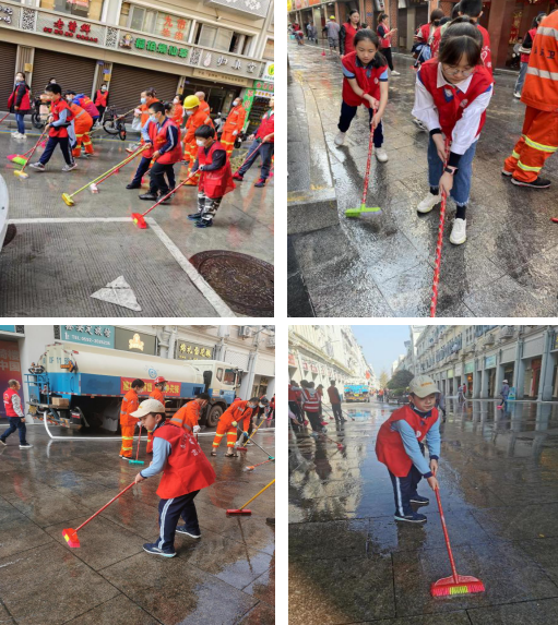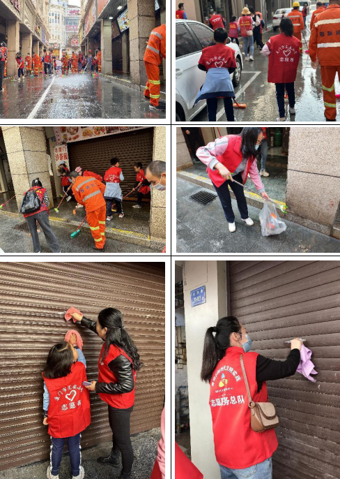 活动开始,党员志愿者们以极高的热情投入到劳动中,清洗定安路和太平路路面污垢、清除路边柱子或路牌上的小广告等。