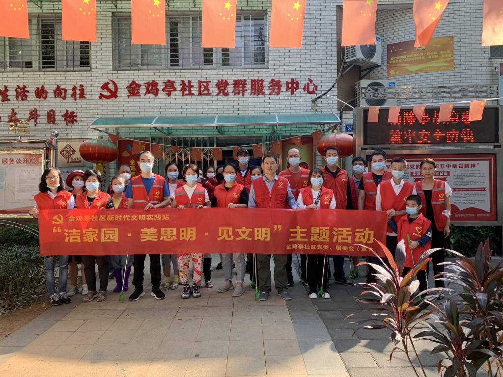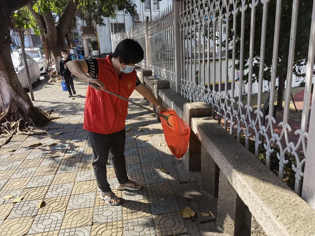 近日,厦门市金鸡亭小学党支部的党员教师们积极响应金鸡亭社区大党委的号召,积极融入社区志愿者活动中,在金鸡亭小区开展“洁家园·美思明·见文明”主题活动,倡导“文明健康、绿色环保”理念。活动中,大家齐上手,干劲十足,清扫死角、清扫草坪及绿化带中垃圾、捡拾各处烟头,积极用实际行动向广大社区居民宣传文明创建“人人有责、人人参与”的理念。