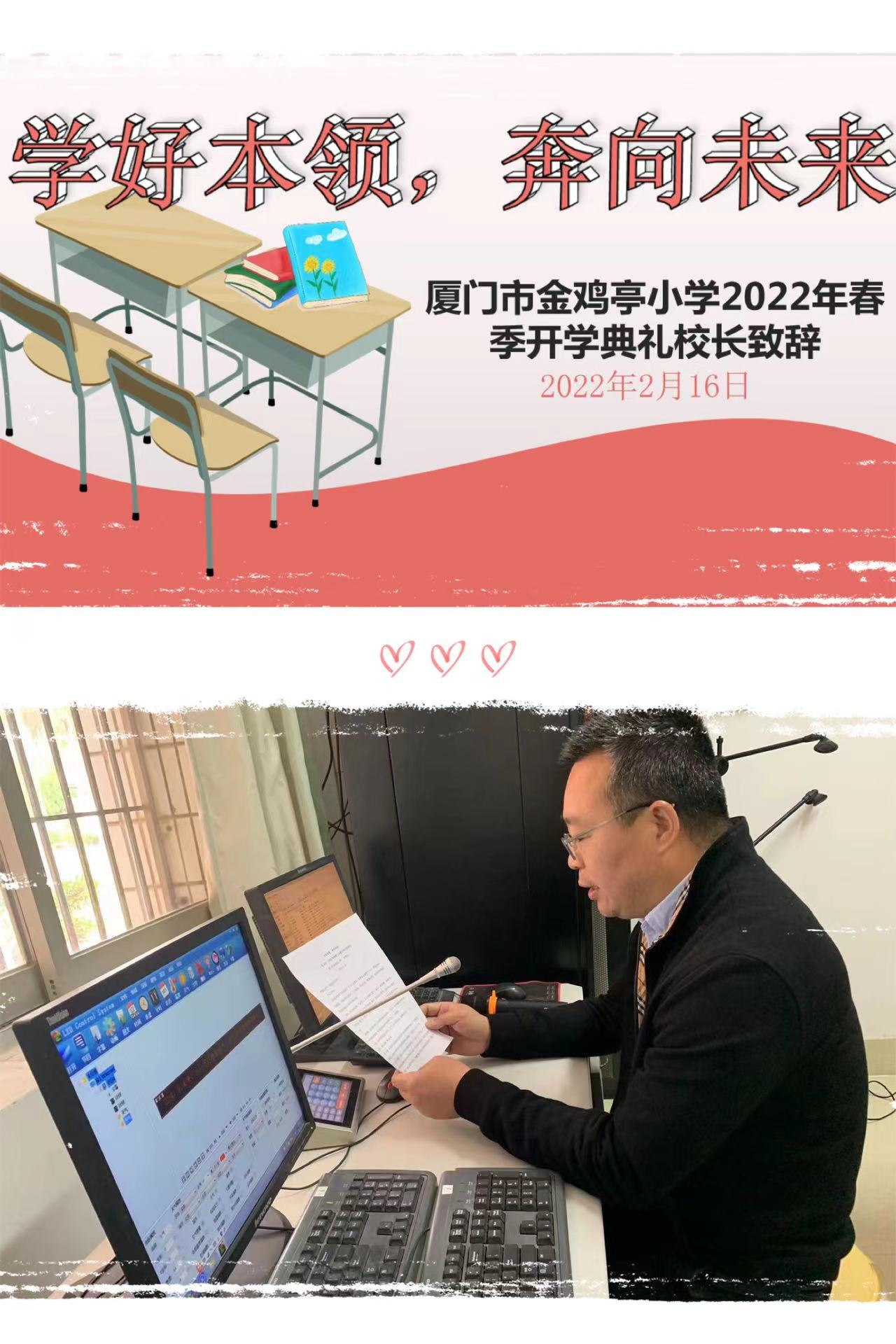 恰逢新时代,奋勇向未来。2022年2月16日上午,虎年新春的热烈红火仍未褪去,充满希望的新学期号角已经吹响,厦门市金鸡亭小学“加油!向未来”2022年春季开学典礼正式拉开帷幕!此次开学典礼紧扣“心向未来”主题从“蓄力”“聚力”“启航”三个篇章具体展开。