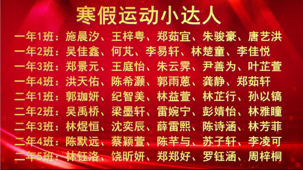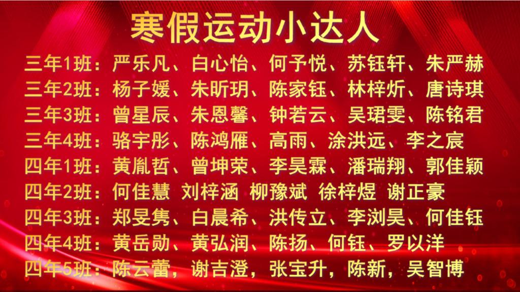 除此之外,同学们的寒假生活丰富多彩,新年实践活动、校外1小时体育锻炼等,并评选出一批“寒假运动小达人”进行表彰。