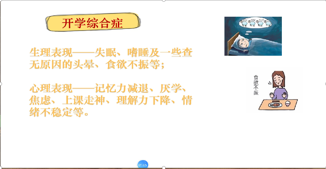 虽慵兴犹在,虽老心犹健,秋来日自长。心理朱老师和校医王老师分别从心理和身体健康出发,讲解开学的心理调适和春季传染病的预防。