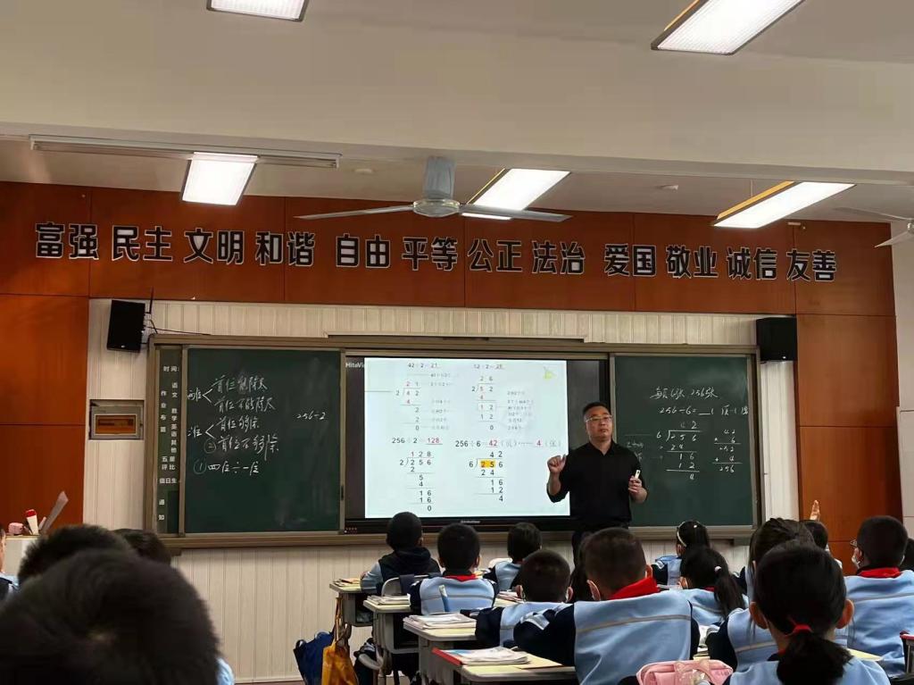 林赞忠校长带来了一堂令人耳目一新的新授课——《首位不够除的三位数除以一位数》 。他的教学目标定位准确,注重学生的能力培养,引导学生从已有的知识出发,经历口算过程,通过概括、推理,得到笔算方法。他的设计在激发学习兴趣的同时也培养了学生观察、概括、启新的能力,采用思维可视化方法,对每一步、每个数的含义进行充分理解,让学生经历理解算理、算法的过程,体验竖式的便捷。最终学生自主归纳出多种的计算方法,帮助学生形成系统的认识,突出以生为本、自主学习的教学理念。这堂课夯实“四基”教学,真正培养了学生发现问题、分析问题、解决问题的能力。
