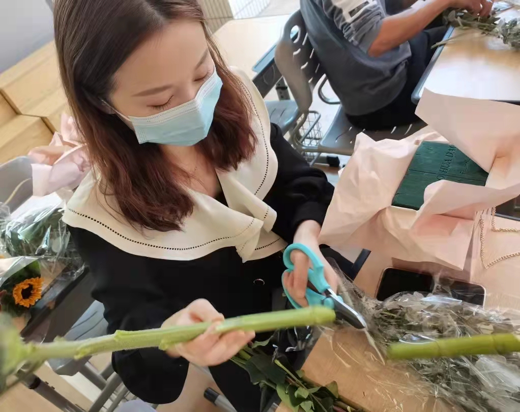 从精心的造型构思到恰到好处的色彩搭配,教师们于一枝一叶之间展现了自身独到的创作灵感和艺术审美,众多细致精美、充满立体感和层次感的花艺作品也在这声声欢笑和阵阵花香中呈现出来。