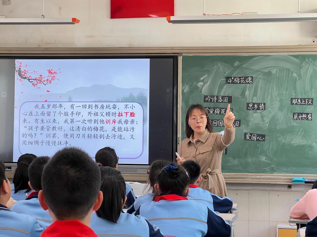 樊善花老师执教的是五年级下册第一单元的第4课《梅花魂》。樊老师如沫春风的语言引领着学生一步步深入体会漂泊异国他乡的华侨老人的爱国心、思乡情。樊老师清晰定位本课在单元中的地位,关注单元导读页和交流平台,综合落实语文要素:体会课文表达的思想感情。