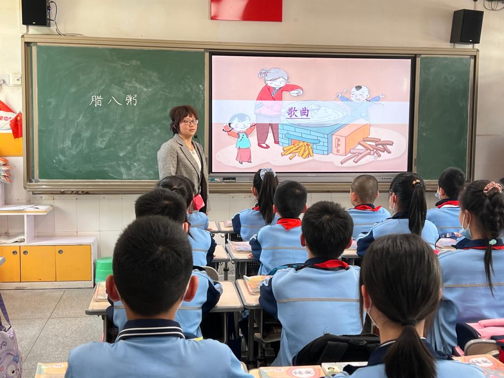 彭郁薇老师执教的是六年级下册第一单元的第2课《腊八粥》。彭老师带着活力四射的激情领着学生体会腊八节浓浓的习俗美、童真美。彭老师先引导学生关注八儿盼粥的迫不及待,再找出描写腊八粥的相关句子,体会腊八粥蕴含的浓浓习俗美。对文本的处理做了一个很好的示范。