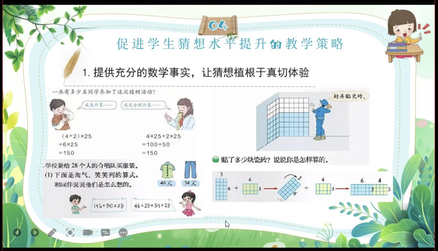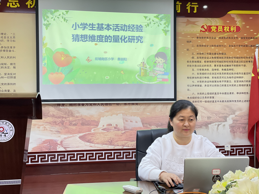 前埔南区小学的桑丽阳老师带来《小学生基本活动经验猜想维度的量化研究》主题讲座。桑老师从“什么是猜想”、“猜想的类型”、“猜想的水平划分及量化”以及“促进学生猜想水平提升策略”四个方面展开分享。不仅介绍了猜想维度不同学段的层次划分,还分享了在教学研究过程中一些具体案例,并提出了提升学生猜想水平的有效策略。