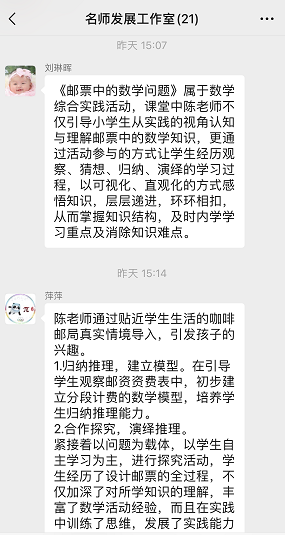 主持人刘琳晖老师以及工作室其他成员也分别从观察、猜想、归纳、演绎这四个维度进行点评。