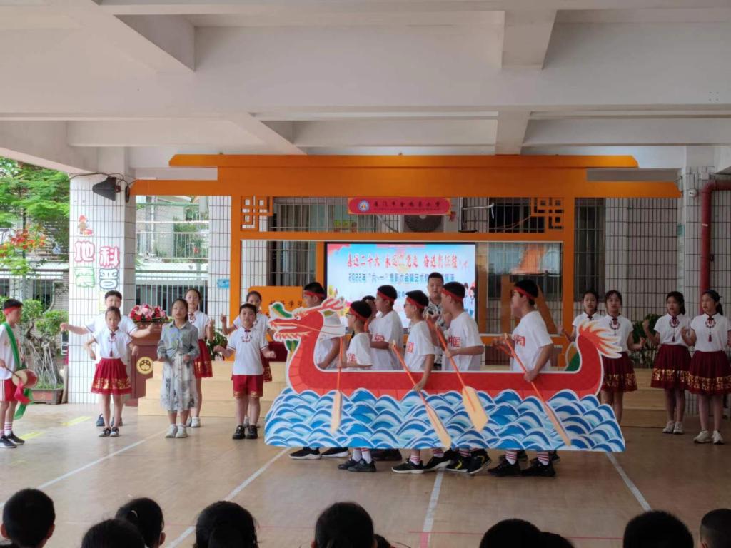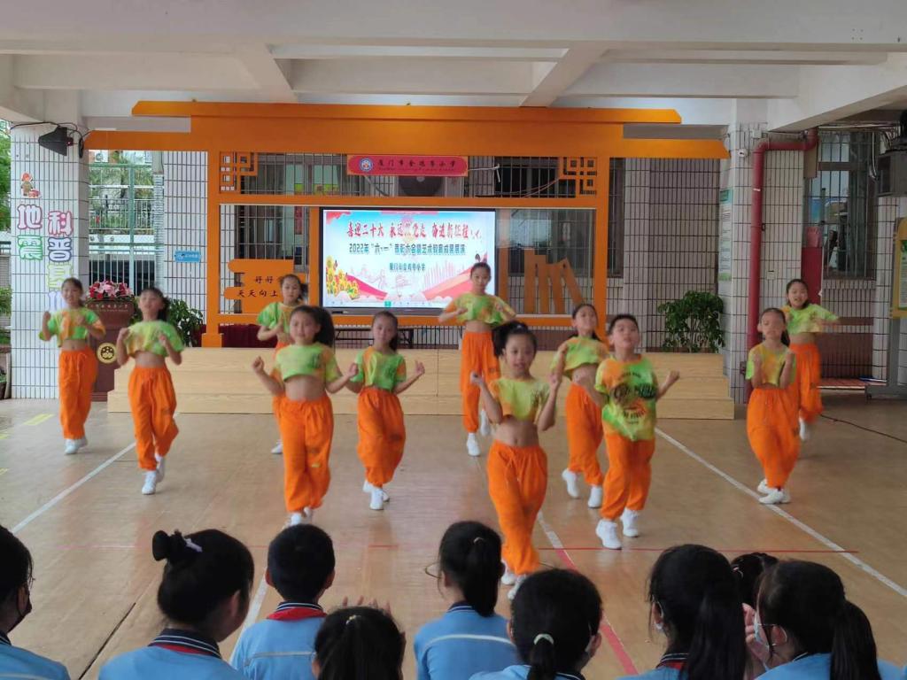 表彰大会结束后,学校举行“喜迎二十大,永远跟党走,奋进新征程”——“六·一”艺术教育成果展演活动。同学们用嘹亮的歌声、优美的舞姿、激昂的诗篇表达心中对党的无限热爱,献上心中对党的美好祝福。