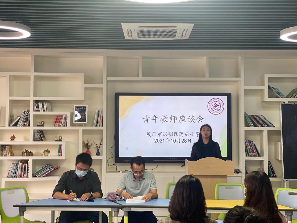 云天收夏色,木叶动秋声。为了更好地倾听青年教师的心声,关怀青年教师的成长,莲前小学于10月28日中午在学校图书馆开展了青年教师座谈会。本次座谈会由教科室副主任孙雅梅老师主持。