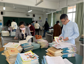 一排排、一摞摞的作业本、教案在桌子上摆放地整整齐齐。检查组的老师们认真细致地查看,将检查结果详实地记录在表。