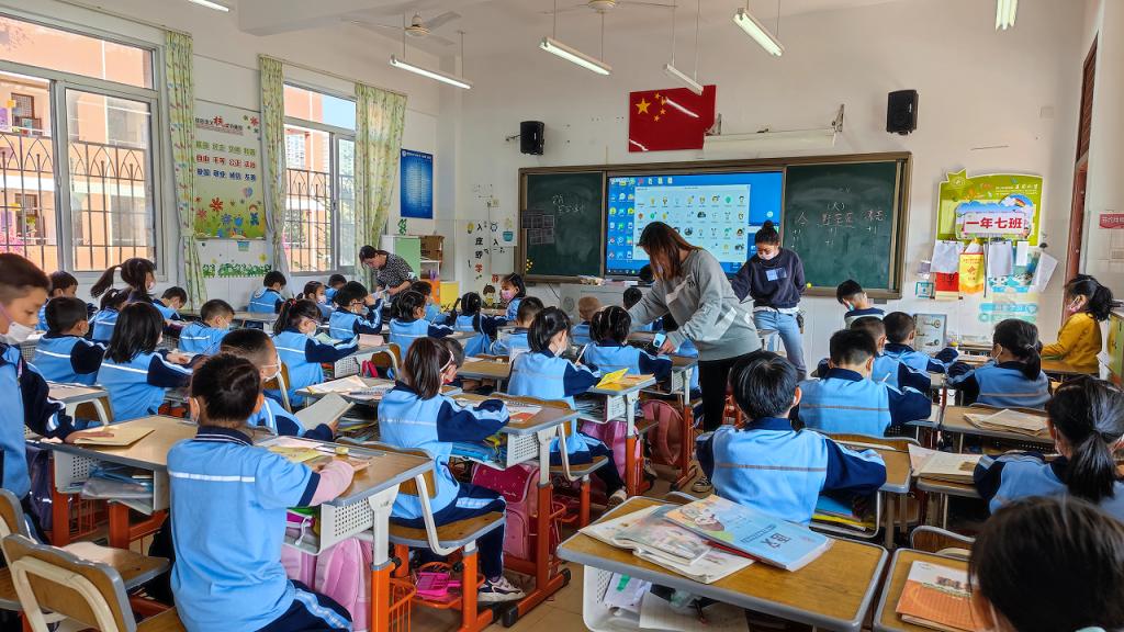 验收活动中,一年级各项常规工作开展得有条不紊。无论是干干净净的地面,整整齐齐的桌椅,有序摆放的书本,还是课堂上专注的眼神、挺直的腰背、响亮的回答、认真的阅读书写口令……都渗透着老师们日常对学生课堂常规指导的心血和智慧。短短一个半月,学生们养成教育初具成效,检查团的老师连连称赞。