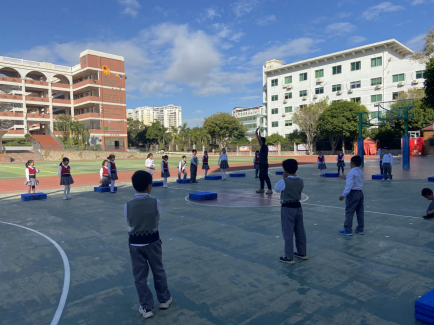 本次活动由体育组进行教研活动展示,体育组以“开发器材功能,发展跳跃能力”为研究方向,大家群策群力,共同探讨体育器材的一物多用,提高课堂教学效率。确定由由年轻、充满活力与激情的连振杰老师执教的二年级《立定跳远》一课。备课组老师经过多次磨课,调整教学设计,完善教学过程。