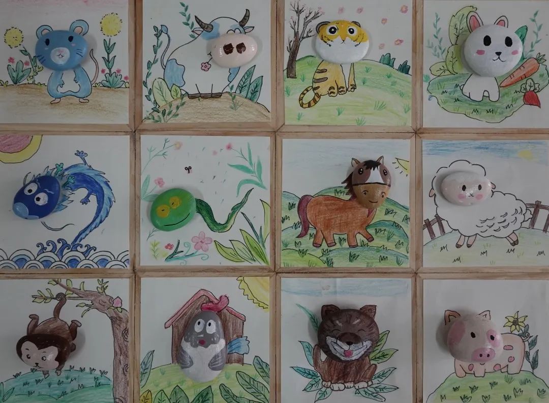 生肖文化,是中华民族智慧的结晶,是我国弥足珍贵的文化资源,更是中华民族文化屹立于世界文化之林的独特标志。千年历史的民族文化,它的传说和故事可以说是举不胜举,被人们所熟识。在这个活动中,同学们利用石头等材料,围绕着与“十二生肖”有关的内容进行创作,如传说故事、动物习性、诗词歌赋、寓意象征等内容,表现单个或一组有关生肖的作品。