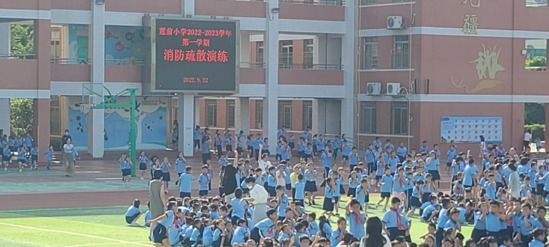 为了进一步贯彻安全教育,增强学校师生消防安全逃生意识,做到在发生火警火灾时,能临危不乱,有序迅速撤离,确保生命安全,2022年9月22日上午,思明区莲前小学开展校园消防安全疏散演练。